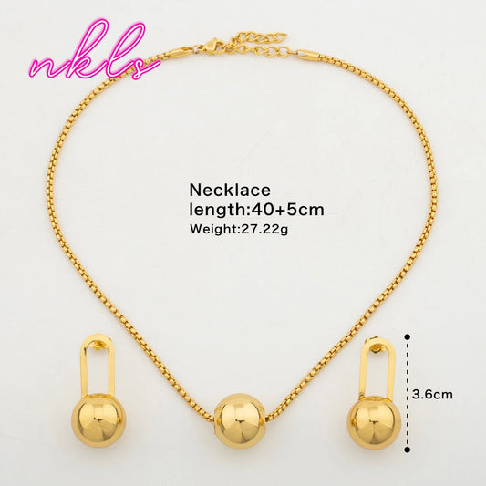Fashion Bead Pendant Jewelry Set For Women Clip Earrings Gold Color Necklace Daily Wear Two Piece Trendy Accessories