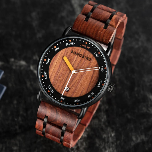 Bobo Bird Wooden Quartz Watch For Men With Date Display