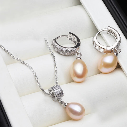 Genuine Natural Pearl Necklace And Earrings Set 925 Silver For Women White Black