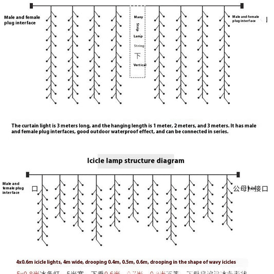 Christmas LED Curtain Lights 3x3m 304 LEDs 16 Strips For Weddings
