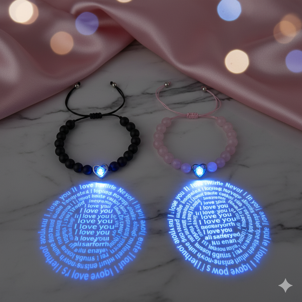 Couples Silver Black Heart Projection Beaded...